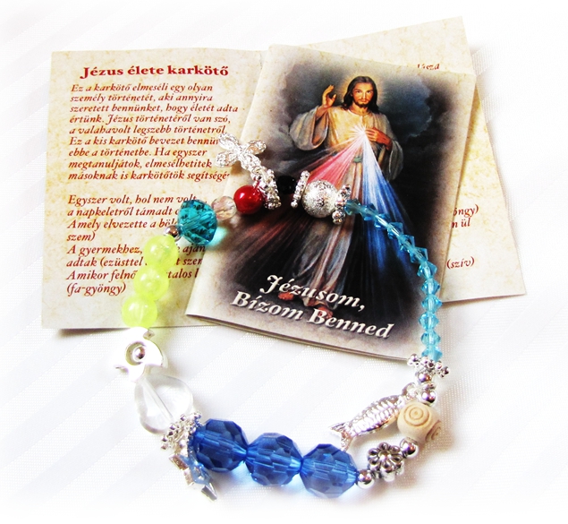 Akit szeretünk, annak fényképét, emléktárgyát, ajándékát szívesen elhelyezzük magunk körül. Jézussal való kapcsolatunk elmélyítéséhez is sokat segít, ha egy képet, vagy rá emlékeztető tárgyakat elhelyezünk lakásunkban. Az pedig még jobb, ha magunkkal is tudjuk hordozni. Egy ilyen keresztény jelképekkel teli karkötő tehát emlékeztethet bennünket az Úr Jézusra, életére, szeretetére. Milyen jó, ha ez már a gyermekkortól kezdve megtörténhet. Ez a Jézus élete – karkötő éppen a gyermekeknek készült, hogy kedvük legyen Jézus jelképeit a hétköznapjaikban is használni. Tehát Jézus életét meséli el ez a karkötő a gyermekeknek megfelelően egyszerű módon. Így szól a "Legszebb történet":